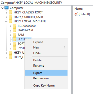 - Reg export the SAM and SECURITY hives which you can you do using reg.exe. Note, that export won’t be blocked because once again, it is only reading registry keys and programs read registry keys all the time. If EDRs had to monitor all of these read operations, I guess the system would crash.