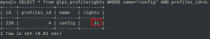 And we got those rights on config (profiles_id : 4 means SuperAdmin):