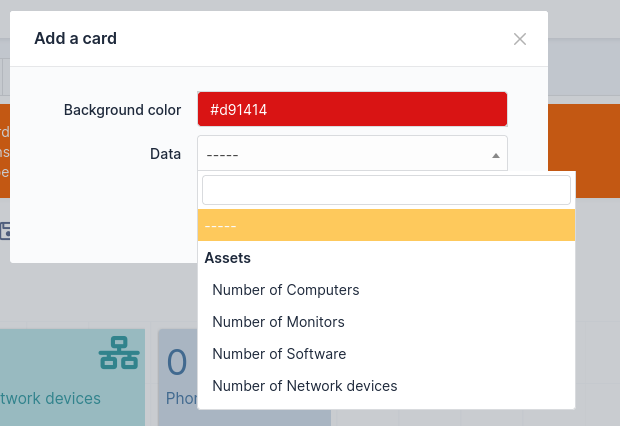 You can add and remove card when customising a dashboard, and there are different types of cards: