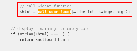By looking at this, I was wondering if there was a vulnerability in one of those widgets. It increases our surface attack by a lot, and might potentially lead to privilege escalation. It is also important to note that we do not fully control the variables given in the call_user_func function.