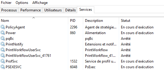 And indeed we can see that a new service, PSEXESVC is running: