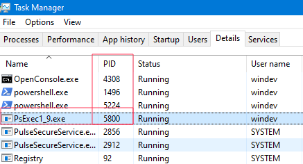What about that 5800 numeric value ? Well, looking at the task manager on the computer where PsExec.exe was launched we will see the following: