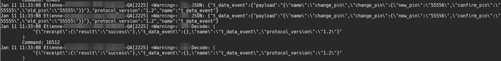 Now we simply need to watch our syslogs and any JSON message sent from the app to the custom protocol’s server will pass through our hook first.